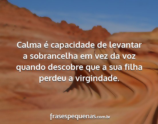 Calma é capacidade de levantar a sobrancelha em vez da voz quando descobre que a sua filha perdeu a virgindade.