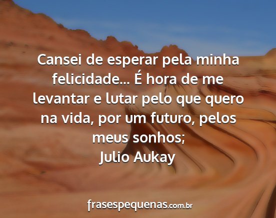 Cansei de esperar pela minha felicidade... É hora de me levantar e lutar pelo que quero na vida, por um futuro, pelos meus sonhos;Julio Aukay