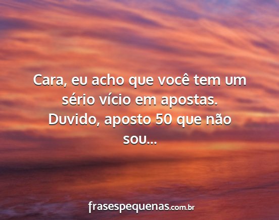 Cara, eu acho que você tem um sério vício em apostas. Duvido, aposto 50 que não sou...