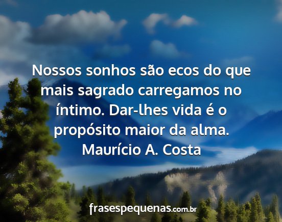 Nossos sonhos são ecos do que mais sagrado carregamos no íntimo. Dar-lhes vida é o propósito maior da alma.Maurício A. Costa