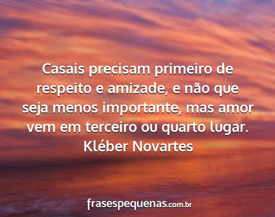 Casais precisam primeiro de respeito e amizade, e não que seja menos importante, mas amor vem em terceiro ou quarto lugar.Kléber Novartes