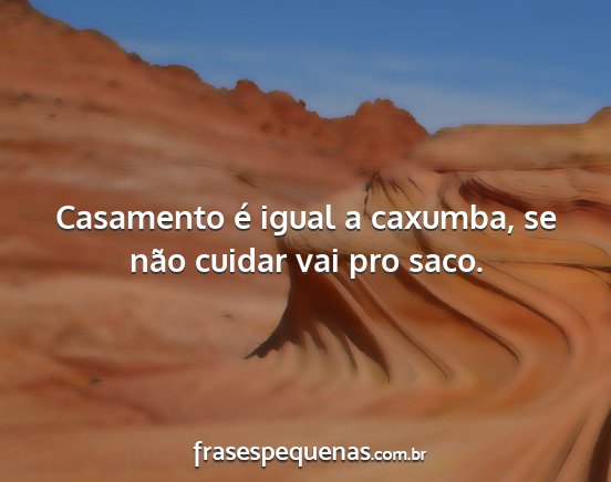 Casamento é igual a caxumba, se não cuidar vai pro saco.