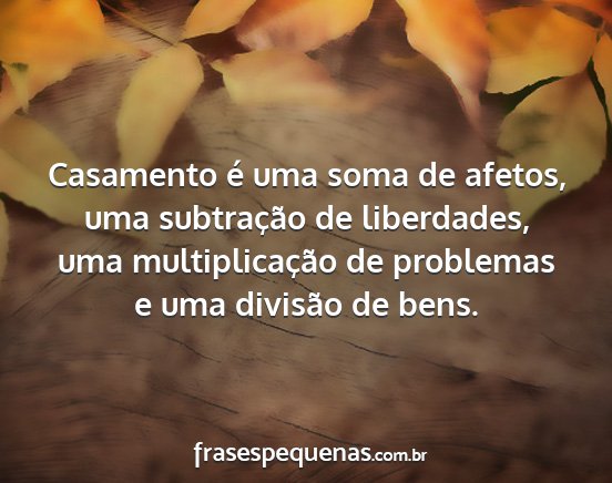 Casamento é uma soma de afetos, uma subtração de liberdades, uma multiplicação de problemas e uma divisão de bens.