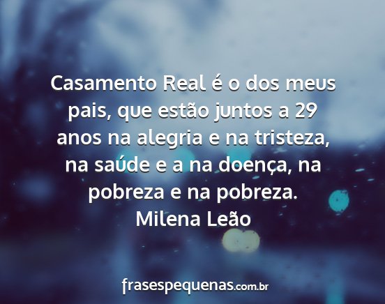 Casamento Real é o dos meus pais, que estão juntos a 29 anos na alegria e na tristeza, na saúde e a na doença, na pobreza e na pobreza.Milena Leão