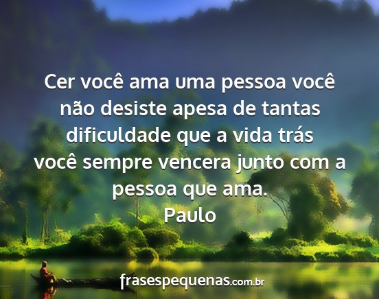 Cer você ama uma pessoa você não desiste apesa de tantas dificuldade que a vida trás você sempre vencera junto com a pessoa que ama.Paulo