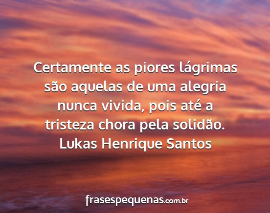 Certamente as piores lágrimas são aquelas de uma alegria nunca vivida, pois até a tristeza chora pela solidão.Lukas Henrique Santos