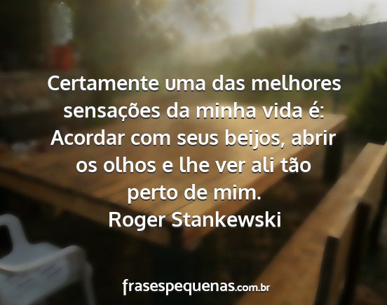 Certamente uma das melhores sensações da minha vida é: Acordar com seus beijos, abrir os olhos e lhe ver ali tão perto de mim.Roger Stankewski