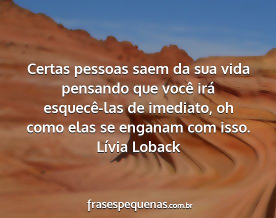 Certas pessoas saem da sua vida pensando que você irá esquecê-las de imediato, oh como elas se enganam com isso.Lívia Loback