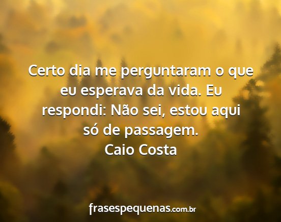 Certo dia me perguntaram o que eu esperava da vida. Eu respondi: Não sei, estou aqui só de passagem.Caio Costa