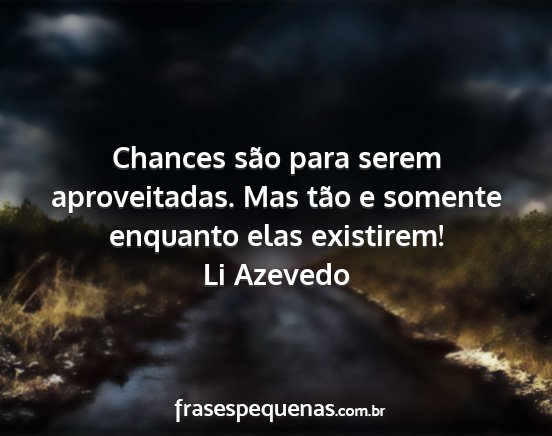 Chances são para serem aproveitadas. Mas tão e somente enquanto elas existirem!