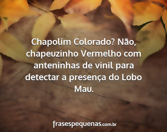 Chapolim Colorado? Não, chapeuzinho Vermelho com anteninhas de vinil para detectar a presença do Lobo Mau.