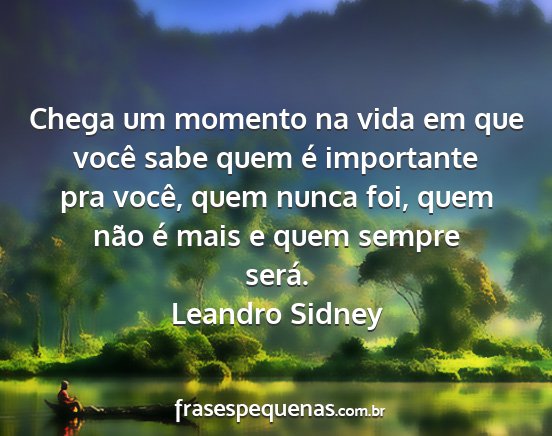 Chega um momento na vida em que você sabe quem é importante pra você, quem nunca foi, quem não é mais e quem sempre será.Leandro Sidney