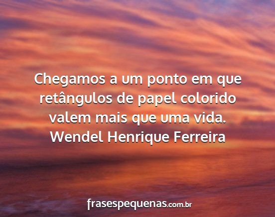Chegamos a um ponto em que retângulos de papel colorido valem mais que uma vida.Wendel Henrique Ferreira