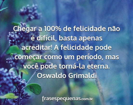Chegar a 100% de felicidade não é difícil, basta apenas acreditar! A felicidade pode começar como um período, mas você pode torná-la eterna.Oswaldo Grimaldi