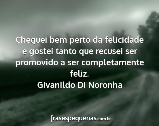 Cheguei bem perto da felicidade e gostei tanto que recusei ser promovido a ser completamente feliz.Givanildo Di Noronha