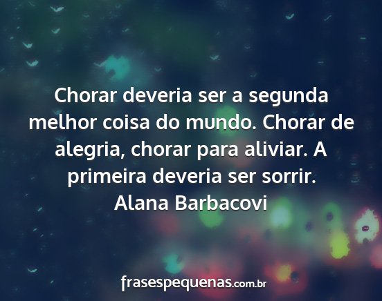 Chorar deveria ser a segunda melhor coisa do mundo. Chorar de alegria, chorar para aliviar. A primeira deveria ser sorrir.Alana Barbacovi