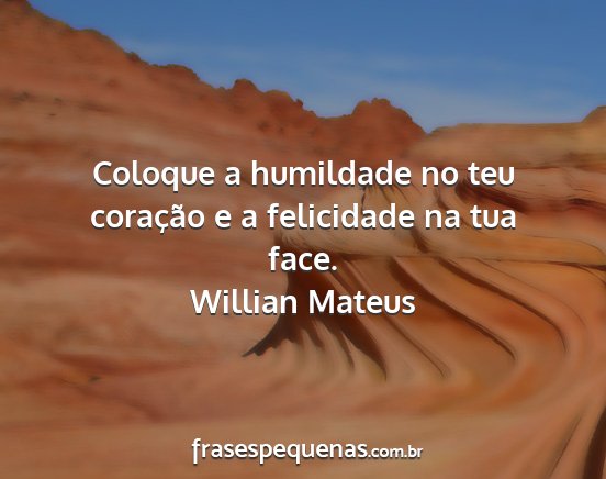 Coloque a humildade no teu coração e a felicidade na tua face.