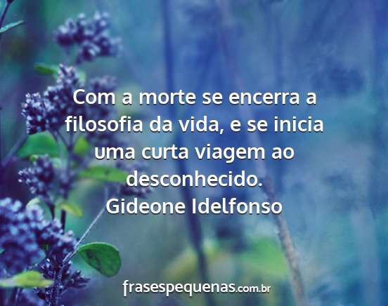 Com a morte se encerra a filosofia da vida, e se inicia uma curta viagem ao desconhecido.Gideone Idelfonso