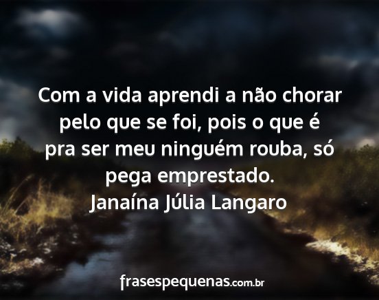 Com a vida aprendi a não chorar pelo que se foi, pois o que é pra ser meu ninguém rouba, só pega emprestado.Janaína Júlia Langaro