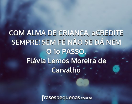 COM ALMA DE CRIANÇA, aCREDITE SEMPRE! SEM FÉ NÃO SE DÁ NEM O 1o PASSO.Flávia Lemos Moreira de Carvalho