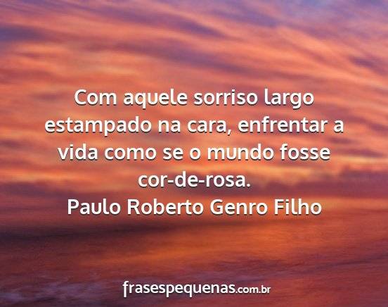 Com aquele sorriso largo estampado na cara, enfrentar a vida como se o mundo fosse cor-de-rosa.Paulo Roberto Genro Filho