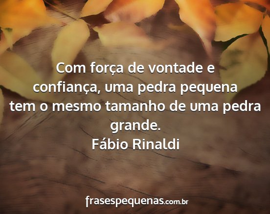 Com força de vontade e confiança, uma pedra pequena tem o mesmo tamanho de uma pedra grande.Fábio Rinaldi