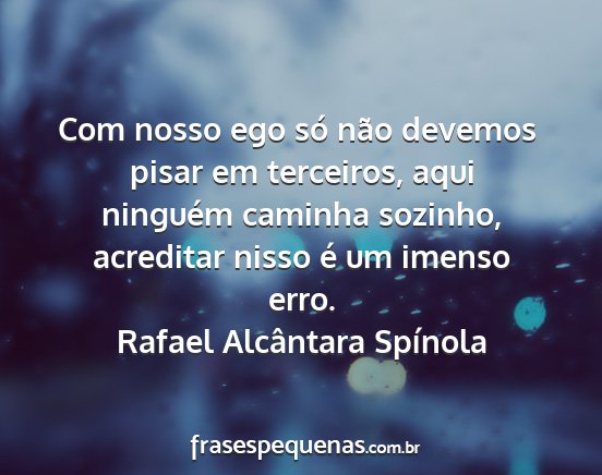 Com nosso ego só não devemos pisar em terceiros, aqui ninguém caminha sozinho, acreditar nisso é um imenso erro.Rafael Alcântara Spínola