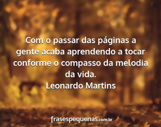 Com o passar das páginas a gente acaba aprendendo a tocar conforme o compasso da melodia da vida.Leonardo Martins