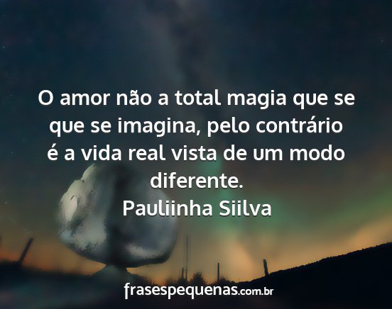 O amor não a total magia que se que se imagina, pelo contrário é a vida real vista de um modo diferente.Pauliinha Siilva