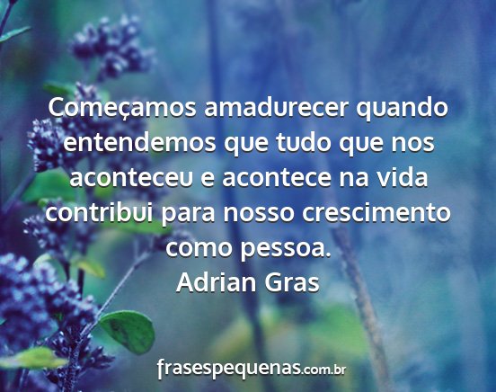 Começamos amadurecer quando entendemos que tudo que nos aconteceu e acontece na vida contribui para nosso crescimento como pessoa.Adrian Gras