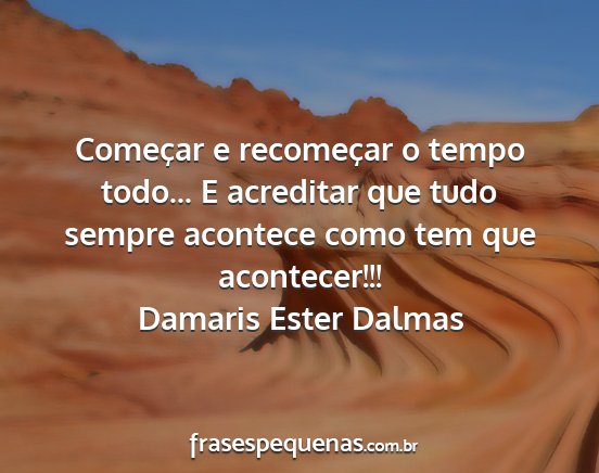 Começar e recomeçar o tempo todo... E acreditar que tudo sempre acontece como tem que acontecer!!!Damaris Ester Dalmas