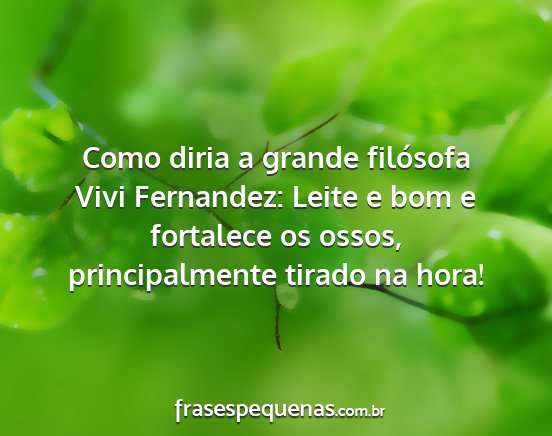 Como diria a grande filósofa Vivi Fernandez: Leite e bom e fortalece os ossos, principalmente tirado na hora!