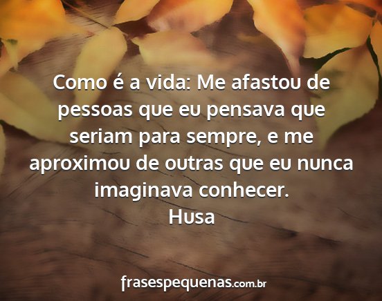 Como é a vida: Me afastou de pessoas que eu pensava que seriam para sempre, e me aproximou de outras que eu nunca imaginava conhecer.Husa