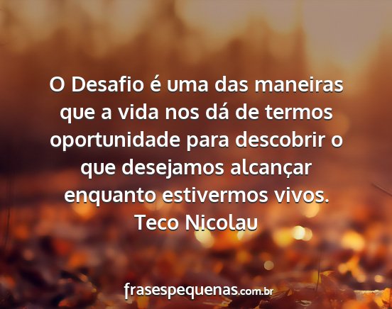enquanto estivermos vivos.Teco Nicolau