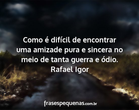 Como é difícil de encontrar uma amizade pura e sincera no meio de tanta guerra e ódio.