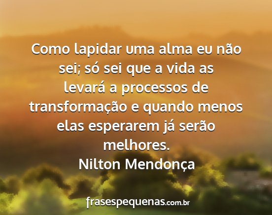 Como lapidar uma alma eu não sei; só sei que a vida as levará a processos de transformação e quando menos elas esperarem já serão melhores.Nilton Mendonça