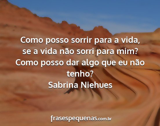 Como posso sorrir para a vida, se a vida não sorri para mim? Como posso dar algo que eu não tenho?Sabrina Niehues