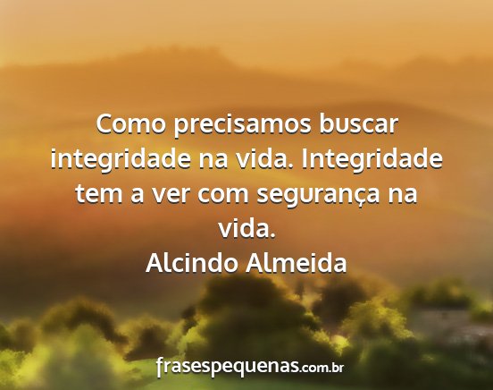 Como precisamos buscar integridade na vida. Integridade tem a ver com segurança na vida.Alcindo Almeida