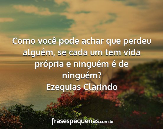 Como você pode achar que perdeu alguém, se cada um tem vida própria e ninguém é de ninguém?Ezequias Clarindo