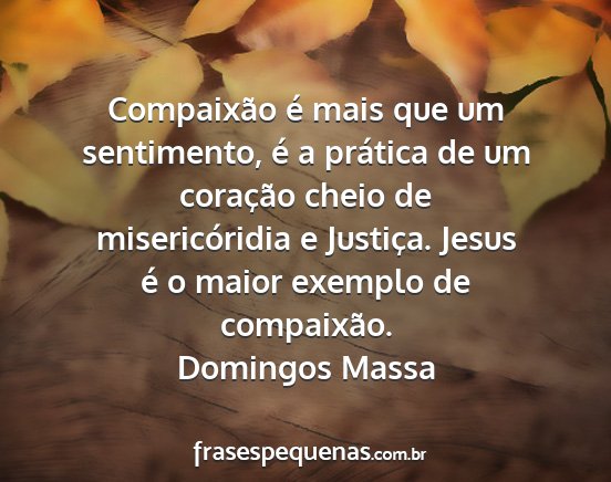 Compaixão é mais que um sentimento, é a prática de um coração cheio de misericóridia e Justiça. Jesus é o maior exemplo de compaixão.Domingos Massa