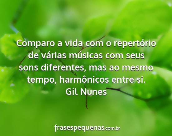 Comparo a vida com o repertório de várias músicas com seus sons diferentes, mas ao mesmo tempo, harmônicos entre si.Gil Nunes