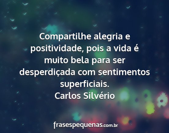 Compartilhe alegria e positividade, pois a vida é muito bela para ser desperdiçada com sentimentos superficiais.Carlos Silvério