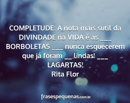 COMPLETUDE: A nota mais sutil da DIVINDADE na VIDA é as ___ BORBOLETAS ___ nunca esquecerem que já foram __ lindas! ___ LAGARTAS!Rita Flor