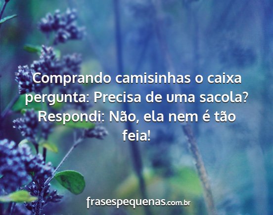 Comprando camisinhas o caixa pergunta: Precisa de uma sacola? Respondi: Não, ela nem é tão feia!