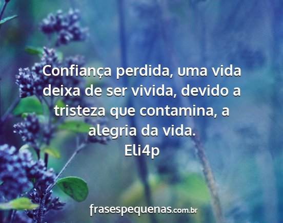 Confiança perdida, uma vida deixa de ser vivida, devido a tristeza que contamina, a alegria da vida.Eli4p