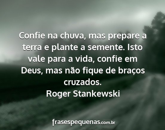 Confie na chuva, mas prepare a terra e plante a semente. Isto vale para a vida, confie em Deus, mas não fique de braços cruzados.Roger Stankewski
