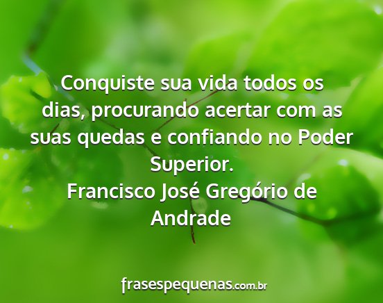 Conquiste sua vida todos os dias, procurando acertar com as suas quedas e confiando no Poder Superior.Francisco José Gregório de Andrade