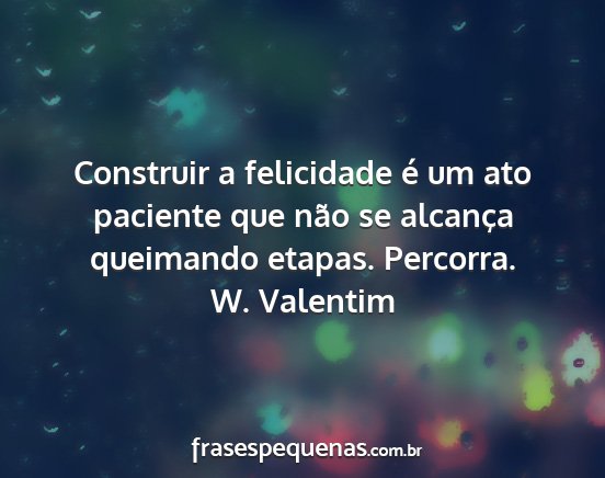 Construir a felicidade é um ato paciente que não se alcança queimando etapas. Percorra.