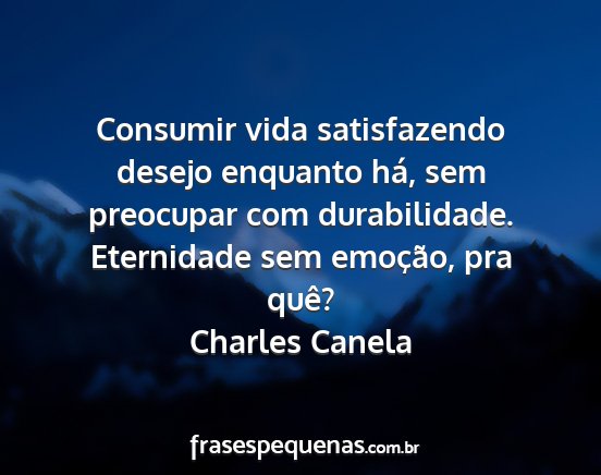 Consumir vida satisfazendo desejo enquanto há, sem preocupar com durabilidade. Eternidade sem emoção, pra quê?Charles Canela