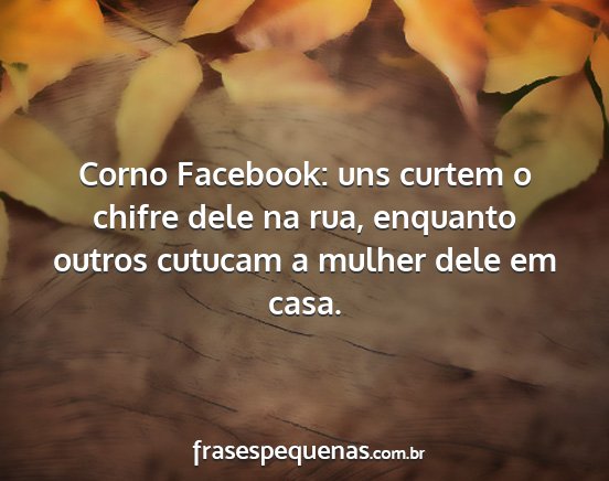Corno Facebook: uns curtem o chifre dele na rua, enquanto outros cutucam a mulher dele em casa.
